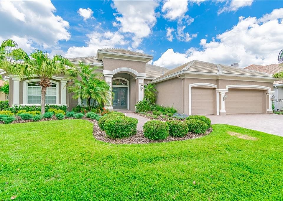 LAKE FRONT home w/ private & tranquil views located in the gated community of Tree Tops! This spacious home is waiting for a new owner. Custom built 4br+ 3bth+ Office+ Bonus room home features a 3-car garage, paved driveway, lush landscaping & an abundance of land. It sits on a PRIVATE, deep LAKE home site, located at the widest part of the lake. Come paddle board, Kayak & fish! Situated on .29 acres, this 3767 sqft. home boasts remarkable maintenance. The kitchen contains 42"cabinetry w/molding, granite,breakfast bar, Kitchen Aid appliances, built in oven & microwave, & soft shut drawers. Entering to the family room, you'll find a set of 16' pocketing sliding glass doors, which leads to the outdoor oasis containing a SOLAR HEATED, PEBBLE TECH POOL (resurfaced 2016) w/waterfall. It's surrounded by various TRAVERTINE covered seating areas (also resurfaced 2016). There is also an Alfresco OUTDOOR GRILL w/ granite tops (remodeled 2016). The pool enclosure was replaced w/super screen (2016) Inside continues with 3 secondary bedrooms, 2 full baths w/granite & an ENORMOUS bonus room. The master suite contains a luxurious bathroom w/ a garden tub, walk in shower, dual sinks & granite counters. Enjoy awe striking views from the large master bedroom. Other appointments include 2 NEW AC units installed 2013 & 2017, NEW hot water tank 2018, NEW interior & exterior paint 2017, NEW carpets 2017, NEW pool pump motor 2018! Updated landscaping 2019 Close to TPA, Downtown, 30 minutes from the GULF BEACHES.