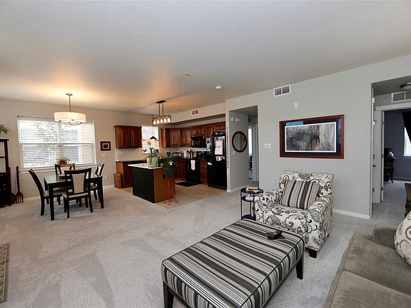 Gorgeous, remodeled carriage home located in the heart of Stapleton facing open space. This main level condo has two spacious bedrooms, and two bathrooms with an open floor plan. The master suite features a fully remodeled master bathroom and a walk-in closet. The spacious kitchen has gorgeous floors, new back splash & upgraded cherry cabinets accented by a breakfast bar/island. Remodel includes new carpet, new paint, new light fixtures, and new ceiling fans. Hot water on demand and a stack-able laundry room. The one car detached garage is over-sized with extra storage space. The location is amazing with close proximity to the East Bridge Town Center and Stanley Marketplace. Splash in the F-15 pool, or get your workout in at the Central Park Recreation Center, both are just blocks away!