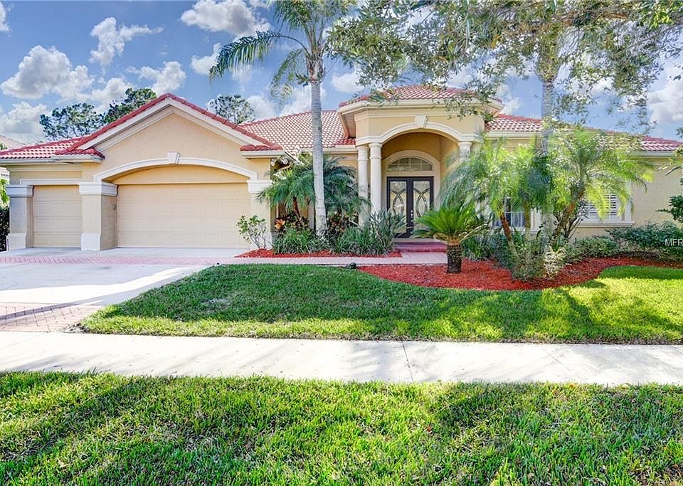 This fine almost half acre residence is located in the highly sought-after private community of Tree Tops. Entering through the gated entrance your drive takes you on a tour of luxury estates arriving at this beautiful home. You will immediately appreciate the quality of the home by noticing the barrel-tile roof and tremendous curb appeal. The double leaded glass doors welcome you into the foyer. Straight ahead is the living room with fireplace, and sliding glass doors to the lanai. To your left is the formal windowed dining room. On to the open and well-designed kitchen. Large and spacious with plenty of cabinets and solid surface countertops, make cooking a delight. There's a wonderful casual dining area conveniently by with window. The family room is of great size and will accommodate all your multi-media needs. The family room has triple sliding glass doors leading to the very large covered and screened lanai. The master suite is a delight, with large and airy bedroom, sliding glass doors and walk-in closet. Master bath with double sinks, tile surround shower, and garden bath is just perfect. There are three additional bedrooms of generous size. A full pool bath, another full bath, and a half bath comprise the rest of the bathroom needs. Every contemporary home needs an office and this home has a well-placed one. Three car garage contains the new water heater. Living in a Hannah Bartoletta in this fine community is what the Florida lifestyle is all about!