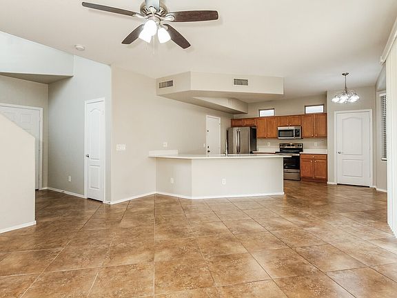 You'll adore this two-story, Mediterranean-style rental home in a Mesa, Arizona gated community. The home offers 1,525 square feet of space, including three bedrooms, two and a half bathrooms, a powder room, and a two-car garage. Enter through the foyer and walk up into the open floor plan living room, dining room, and kitchen. The living room's sliding glass doors open to the covered patio and walled-in backyard. The kitchen, conveniently accessible from the garage, has a pantry, a stainless-steel double sink, and high windows. Upstairs, you'll find the bedrooms, the laundry room, and a loft area. The main bedroom has a walk-in shower and a spacious walk-in closet. Schedule a tour of this home now.