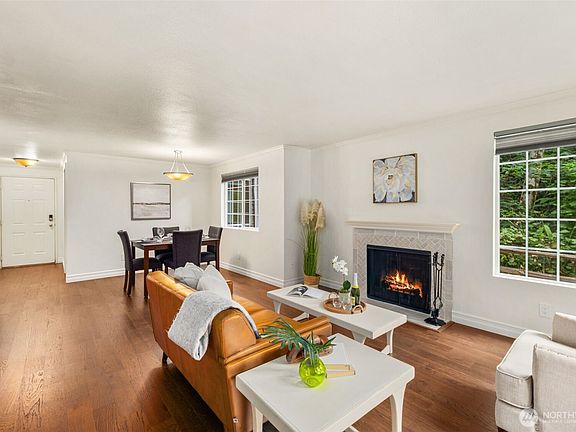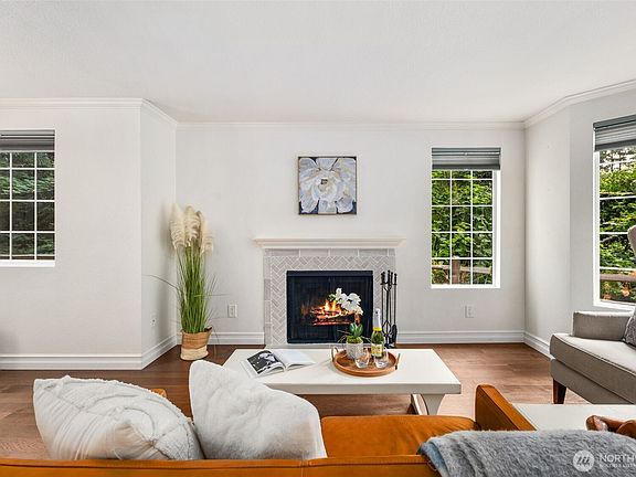 Beautiful ground level condo nestled in the heart of desirable Juanita. No Rental Cap! The floor plan boasts an amazing 2 Bedroom layout w/bright & airy atmosphere and an open kitchen/living space for entertaining. Engineered wood flooring throughout and updated fireplace, this condo offers the amazing convenience of the Kirkland/Juanita area shopping and dining. The living room offers a beautiful view of the nearby creek and in close proximity to trails nearby. Step outside onto the patio leading to lush green grounds, serene views & beautiful sunsets. well run HOA! A short walk to Juanita Beach & Bay Parks! easy access to I-405, beaches, restaurants, shopping, library, Google, DT Kirkland. assigned carport!