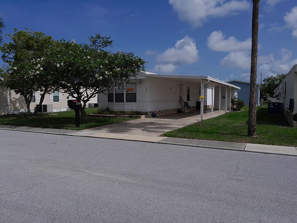 This bright and roomy 2 bed 2 bath is waiting for you to make it your new home. Located in a very friendly, active 55+ community with many amenities. The long driveway under a shady carport can accommodate at least 3 cars. At the end of the driveway is a storage shed and the freshly painted outside lends a nice clean appearance. Also, brand new windows have been installed on the west side of the home. You enter into the welcoming neutral color living room. The spacious kitchen, with a large bright dining area and abundant cabinets is located in the front of the home. All appliances are included, the stainless steel French door refrigerator and electric stove are new. The guest bedroom is a nice size and the guest bath has a step in shower. Newer washer and dryer are located inside the home. The large primary bedroom and ensuite bathroom, also with a step in shower are located at the back of the home. Call soon to schedule your appointment to view this lovely home.