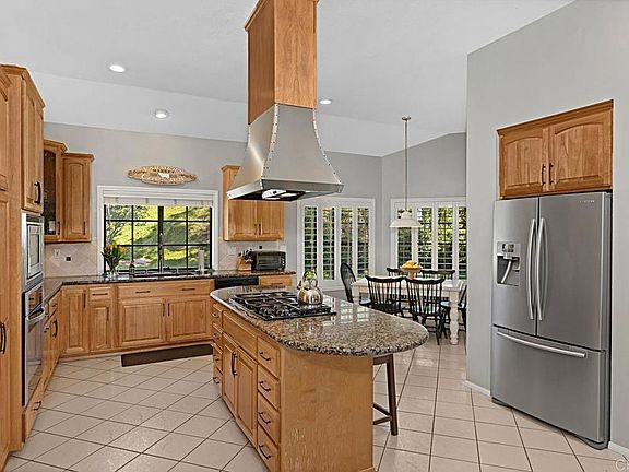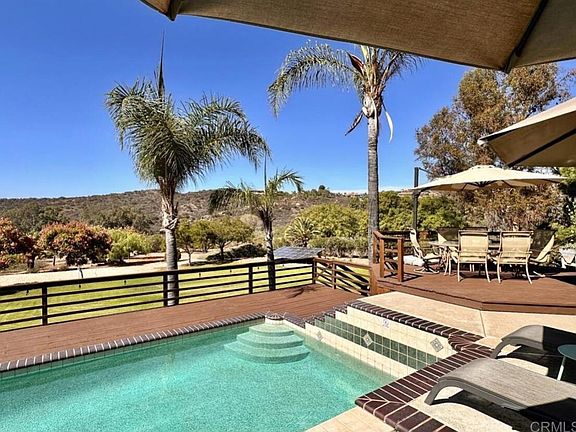 Buy a Lifestyle! From its shady front porch to park-like landscaping, this stunning Spanish-style home defines California living. Nestled below street level in a quiet country neighborhood, it offers beautiful views from the living areas, patios, and heated saltwater pool and spa with newer variable-speed pump. Enjoy the tranquility of rural living while staying city close. The property includes owned solar, a 3-car garage with EV charging and abundant cabinetry, a shared landscape well with newer pump, upgraded roof, retractable solar shade, four fireplaces, dual HVAC systems, and attached ADU. The ADU with entrances from the front porch, rear patio, and main home includes a kitchenette, bath, fireplace, and mini-split. Ideal for guests, or a gym, studio, office, or entertainment space. The expansive backyard feels like a private park with 20+ mature trees, a playing field, picnic area, volleyball court, and sunset views. Enjoy direct access to riding and hiking trails from the rear gate, plus a storage shed, dog run, garden, and room for horses. Inside, the single-story layout offers high ceilings, plantation shutters, and neutral décor. The kitchen showcases custom cabinets with pullouts, granite counters, an eat-at island with gas range and designer hood, and breakfast nook. Dual living areas with fireplaces, wet bar, and formal dining make entertaining easy. The primary suite includes a double-sided fireplace shared with a sitting room or office, walk-in closet, and separate tub and shower. Three additional bedrooms and 1.5 hall baths complete the home. Make your appointment today to see this one-of-a-kind property!