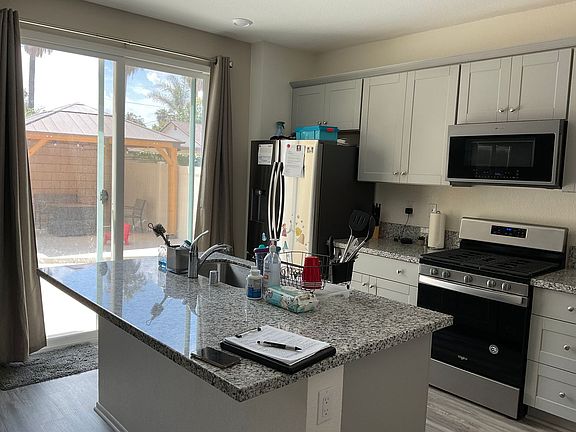 This is a 3 bedroom 2.5 bathroom two story home. The downstairs has vinyl throughout with an attached 2 car garage and slider door access to the backyard. The kitchen is very spacious and comes with stove, microwave, and dishwasher The upstairs is carpeted and has the laundry room with washer/dryer connections and all bedrooms that each have walk in closets. Great community in a perfect location! With community pool and spa. Close to freeway, schools and shopping mall. **Please do not disturb- Tenant occupied