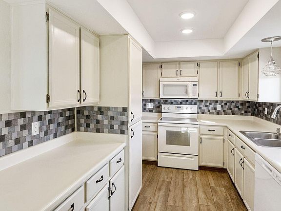 Stylish tile backsplashNew french doorsEntertainers wrap-around patioPainted cabinetsSpacious primary suiteBright spare bedroomNew plank ceramic flooring
