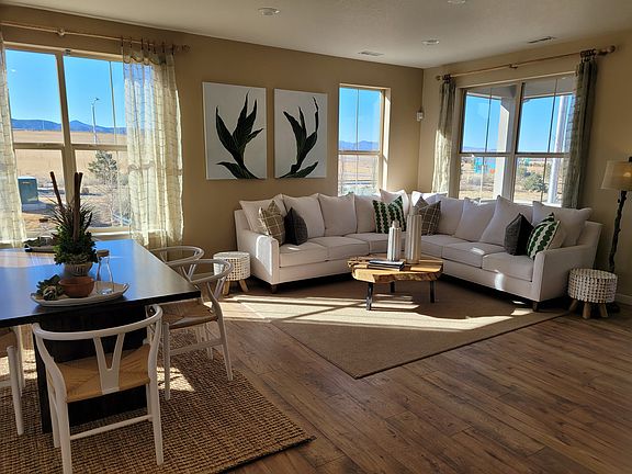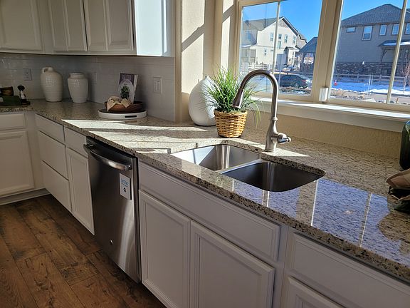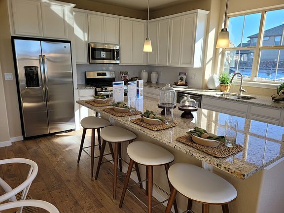 This almost new model home by Lennar in Sterling Ranch. Offering 1812 square feet of everything you want, including 9' ceilings, 8' two panel doors, and engineered vinyl plank floors on the main level. The chef's kitchen features 42" upper cabinets with crown molding, granite counters, stainless steel appliances including the GE range/oven, built-in microwave, refrigerator, undermount sink, and a versatile kitchen island and pantry. A spacious living and dining area, with access to the attached wood deck, and powder room round out the main level. As you make your way up the staircase showcasing stained wood handrail and wrought-iron spindles, you will find the master suite with on-suite master bathroom including an enlarged shower, granite countertops, double-sink vanity, and walk-in closet. Two additional bedrooms, a full bathroom and an upstairs laundry room. Also included is forced air heating and air conditioning, a 2-car garage with garage door opener and electronic keypad, integrated solar energy system with real-time monitoring reduces electric bill significantly, great pool and Recreation Center, and lots of outdoor activities nearby. Make this your next home!
