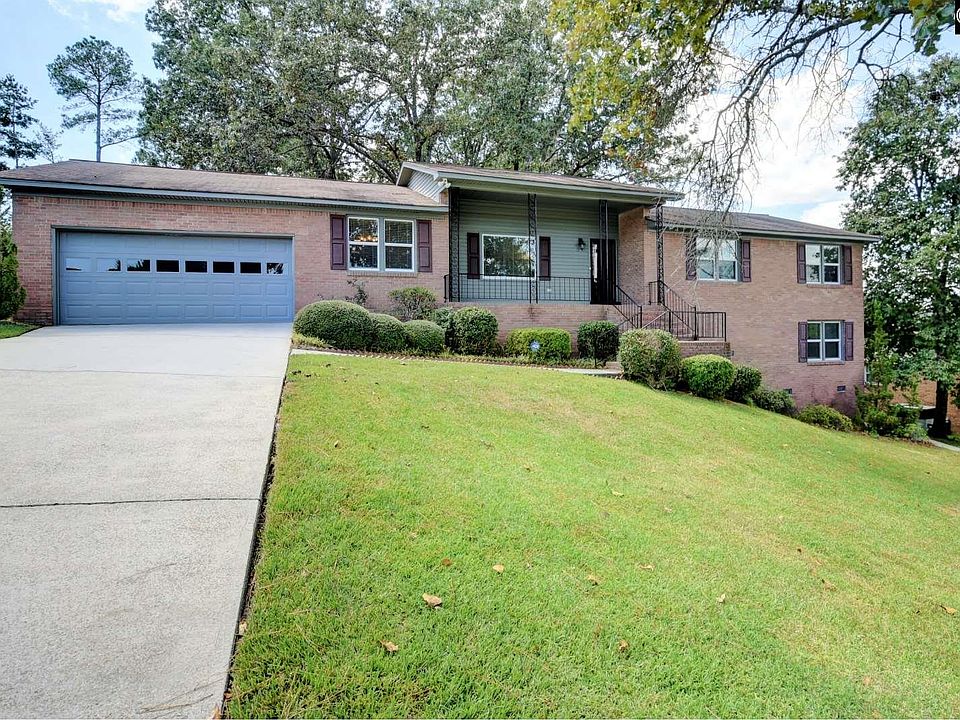 House on the hill! MOVE IN READY- BRICK- 2 car garage- Floor plan: Majority of living space on ONE LEVEL + BONUS LOWER LEVEL space w/ full bath- FORMALS (DINING+ LIVING) + DEN w/ FIREPLACE/ HIGH CEILING; all beds on main level. UPDATED- Features include: recent HVAC WINDOWS, and kitchen renovation offering SOLID SURFACE counters, TILED FLOORS/ BACKSPLASH, & DOUBLE ovens! TILED baths+ WOOD floors in GREAT RM, and & ALL BEDRMS. Great outdoor space with DECK, FENCED SHADED backyard. Convenient location close to shopping/dining options/ I-77/I-20. Sqft approx; buyer to verify