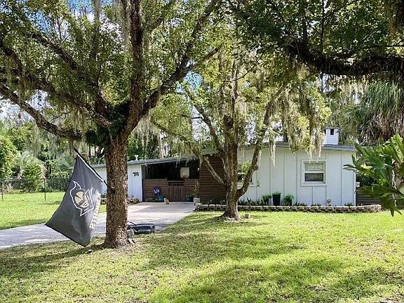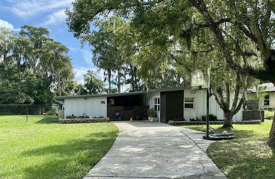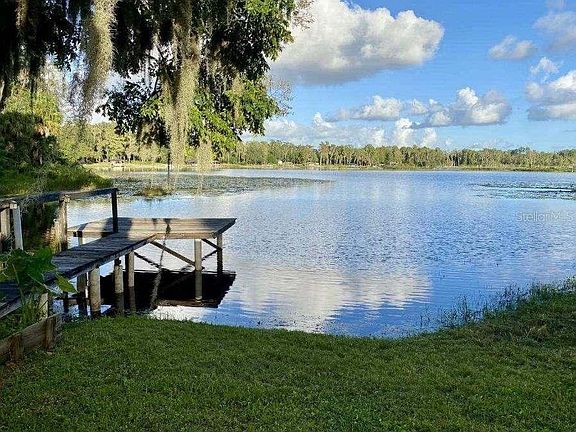 WAIT, WHAT? Yes, that price listed above is correct for this Florida home on Lake Georgia! Not only is Lake Georgia a ski lake, this 4 bedroom 3 bath renovated home is complete with a dock, boat ramp and no HOA! The dock is constructed of pressure treated wood and was rebuilt in 2018. (Dock supports are cemented into pvc pipe.) As you approach the front entry, the 1 car carport is currently being used as a covered front porch. To the left of the entry door is the door to the laundry room. The 165 sq ft air conditioned laundry room is not included in the square footage of the home which is shown as 1770 sq ft. Completely updated kithen with kitchen island, new cabinets, tiled backsplash, new range and refrigerator plus granite counter tops. Wood and tile floors throughout. A wood burning fireplace is in the family room. The primary bedroom has its own private bath (Granite counter top in bath. Tub with shower), walk in closet and a built in closet. The guest suite (4th bedroom) has its own full private bath and double door that open to the screened patio/the closets were added and are attached. The 2nd and 3rd bedrooms share a full bath (tub and shower) off the hallway. There is a mini split in the primary bedroom and in the guest suite to add to your cooling/heating comfort in addition to the central air/heat system. 2 tankless water heaters (gas), Fenced yard with double gates at the front and rear allows for easy access for you to launch your boat from the boat ramp. Brick pizza oven/grill just outside the fenced area and a kayak/canoe storage rack at the waters edge next to the dock. Enjoy every morning sunrise while sipping your coffee in the rear screened paito. This home has a terminte bond that was renewed this year. Storage shed on the property plus extra storage closets in the laurndry room too. Room measurements and dock measurements are approximate. Buyer will need to verify all room measurements and schools.