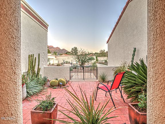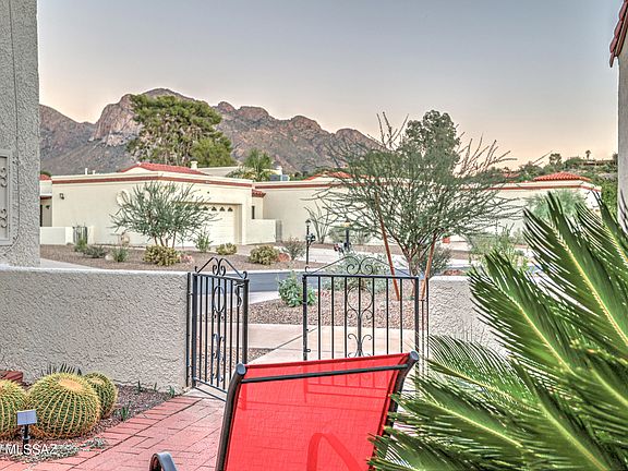 Nestled within the coveted Oro Valley Country Club community, this meticulously maintained townhouse offers a lifestyle of comfort, sophistication, and convenience. Step inside to discover a spacious, light-filled interior with soaring ceilings, warm neutral tones, and tasteful finishes throughout. The open-concept living and dining areas flow seamlessly into a well-appointed kitchen featuring upgraded countertops, stainless steel appliances, and ample cabinetry--perfect for both casual mornings and elegant entertaining. Retreat to the generous primary suite, complete with a walk-in closet and spa-inspired bath. Three different patio spaces (front, interior, and back) invite you to unwind at any time of day whether it is to unwind under the stars, watch the colors of the sky change at sunset, or enjoy a morning coffee with views of the Catalina Mountains. Located just moments from golf, hiking trails, and upscale shopping and dining, this home offers the perfect blend of tranquility and accessibility. Whether you're seeking a seasonal escape or a full-time residence, this townhome delivers the quintessential Oro Valley lifestyle.
