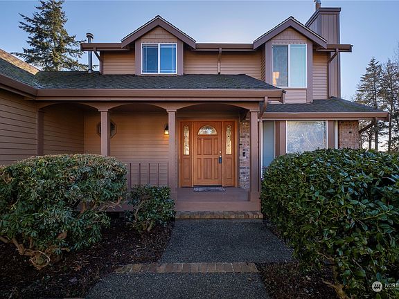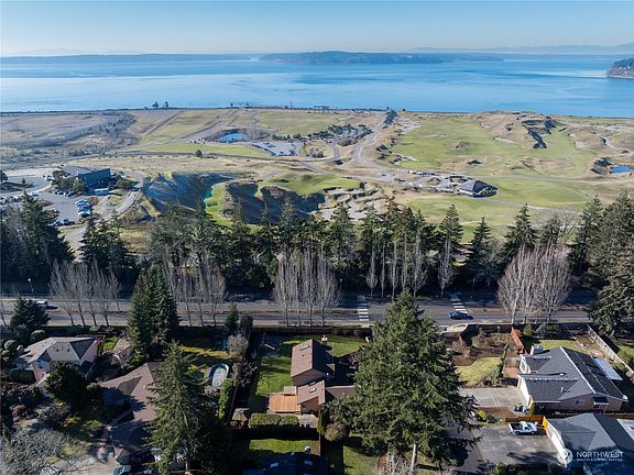 Amazing 3 bdrm, 2.25 bath view home w/generous covered front porch. Enjoy a truly fantastic location across the street from Chambers Bay Golf Course & Park w/paved trails, panoramic views, playground, & dog parks. Remodeled kitchen & newer appliances. Expansive living/dining room area has a gas stove w/brick finishes. Relax in your vaulted primary suite w/full bath & large quality upper deck w/great trail & water views. Private covered hot tub tucked away in a large fully fenced backyard w/garden space incl. established grape, blueberry plants & fruit trees. Newly painted exterior & 40 year roof shingles add value to this turnkey home. Nearby Whole Foods, Trader Joes & Harbor Greens. Award winning UP school district! Connected to Sewer.