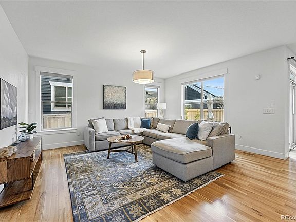 Ideally located in Denver’s Central Park neighborhood, this spacious Eastbridge home sits directly on Arc Park and is just minutes from Stanley Marketplace, Eastbridge Town Center, Westerly Creek trails, the F-15 pool, and the Central Park Rec Center. The location truly can’t be beat! The open-concept main floor is filled with natural light and features a generous living room, large main-floor office, expansive dining room, well-appointed kitchen with breakfast nook, half bath, functional mudroom, and beautiful hardwood floors. The kitchen includes a peninsula that seats four, newer appliances—including an induction cooktop—and a custom walk-in pantry. Upstairs, you’ll find four bedrooms and three full baths, including a five-piece primary suite and a secondary en-suite bedroom, along with a convenient laundry area. The finished basement offers an en-suite guest bedroom and bathroom, open living and workout spaces, and excellent storage. Set on a tree-lined street with no through traffic, the home features a private backyard with a lush lawn, patio, and new fence—ideal for outdoor living. Just across the street, Arc Park includes two playgrounds and a large grassy area. The long driveway provides space for basketball or other outdoor activities and has room for two cars. An attached, finished two-car garage, new Class 4 roof, and high-efficiency furnace, A/C, and tankless water heater complete this thoughtfully designed home in one of Central Park’s most desirable locations. Welcome!