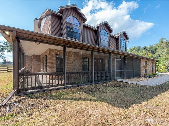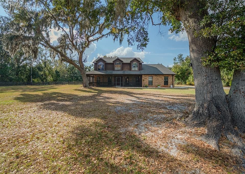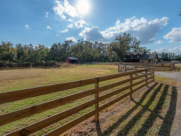 After the workday winds down, picture your short 20-minute drive home—leaving the noise of the city behind for the quiet comfort of “Our Country Home”. Tucked at the end of a private gated road & surrounded by more than 3 acres of peaceful land, this is where evenings are spent around the pool, cotton candy sunsets are a daily showpiece, & life slows down in all the right ways. Inside, the home feels cozy yet spacious, bright & warm, traditional yet modern. The large kitchen’s centerpiece is the brick wall with built-in stovetop & wall ovens. The kitchen features newly refaced shaker style cabinets, reverse osmosis filtration, large brick kitchen island,& newer stainless steel appliances. Engineered hardwood floors flow throughout the entire home, & all bathrooms were beautifully renovated in 2023. The downstairs layout is designed for both comfort & connection. Step through the inviting foyer into a home that feels warm & welcoming from the start. A formal dining room sets the stage for gatherings & holiday meals, while the spacious yet cozy family room offers the perfect spot to unwind or entertain. A versatile bonus space adds flexibility—it can serve as a formal living room, home office, or playroom. The outdoor spaces are just as inviting as the indoor ones, featuring a large wraparound screened front porch perfect for morning coffee or evening chats, & a fully screened pool & patio area with pavers, an outdoor bar, connections for an outdoor TV, & a convenient pool bathroom. While the downstairs area is all about the living & entertaining spaces, the upstairs houses all 4 spacious bedrooms, each with their own dedicated corner & serene views. Tucked away in the quiet back corner of the home, the primary suite is a true retreat overlooking the pool & peaceful property. This spacious 14x18 room feels open & inviting with vaulted ceilings, warm wood tones & accents throughout, & natural light pouring in from every angle. The walk-in closet features custom built-in shelving, offering both function & sophistication. The renovated en suite bath exudes spa-like tranquility, showcasing an oversized shower wrapped in wood-look tile, a sleek glass enclosure, & white large-format hexagon tile flooring that adds a touch of modern elegance. Distinctive green barn doors tie in beautifully with the deep green dual-sink vanity, creating a refined aesthetic. This home has been meticulously maintained with major updates: fully paid-off solar panels keep electric bills as low as $10/month, the roof was replaced in 2021, both HVAC units replaced in 2021, & the interior was recently painted. Outdoor improvements include a pool heater, screened pool enclosure & front porch, fully fenced property, & added bamboo for privacy from the front neighbors. The outdoor spaces are what truly make Our Country Home charming & special. The barn has been repainted to a picturesque farm red, upgraded with electricity, & the back corner of the property houses a dog kennel. The property also features a deep, fully stocked pond with catfish, bluegill, tilapia, bass, turtles, & even the occasional otter—complete with a culvert for easy access to the back pasture. With a well, water softener, tannin filtration system, & reverse osmosis in the kitchen, the home is self-sustaining & efficient. From the country-style charm to the solar-powered upgrades, Our Country Home offers a lifestyle that feels worlds away—yet keeps you within minutes of all that Tampa has to offer.