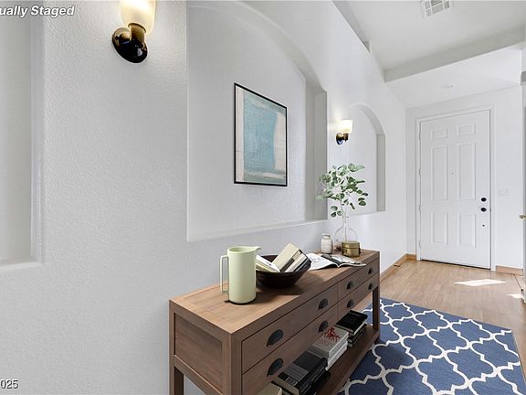 Welcome to this charming single story townhouse in a gated Southwest community near Summerlin and Bishop Gorman High School. Offering 2 bedrooms, 2 baths, and open den space and 1,524 sq ft of open living space, this home features tall ceilings, fresh paint, and new carpet. The kitchen includes its own cozy eat-in dining area, plus a separate formal dining space just off the main living area, ideal for entertaining or everyday comfort. The private backyard provides a peaceful outdoor retreat, while the community pool offers the perfect place to relax and unwind. Conveniently located near the 215 freeway, shopping, and dining, this move-in-ready home combines comfort and convenience in one of Las Vegas’s most desirable areas.