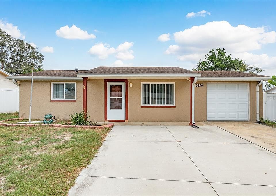 Welcome to this beautifully updated 4-bedroom, 2-bathroom home with a 1-car garage—move-in ready and full of charm! As you arrive, you’ll appreciate the expansive 3-car parking pad, providing plenty of room for vehicles, guests, or toys. The inviting front porch sets the tone for the warm and welcoming interior. Step inside to a spacious living room with designer wood plank flooring that flows seamlessly through the living areas, kitchen, dining room, and hallways. New ceiling fans with lighting add both style and comfort. The stunning kitchen is a chef’s dream, featuring wood cabinets with soft-close drawers and doors, stainless steel appliances, and gorgeous quartz countertops. The adjacent dining area makes entertaining easy and enjoyable. To the left of the living room are two generously sized bedrooms with ample closet space and tile flooring, conveniently located near the first full bathroom boasting a jetted tub with shower. Just past the dining area is the third bedroom, perfect for guests or a home office. At the rear of the home, the spacious primary suite offers a walk-in closet and a beautifully remodeled en-suite bathroom with a new shower, vanity, countertops, and fixtures, absolutely stunning! Step outside to enjoy true Florida living! The tiled, screened, and covered back porch is the perfect space to relax or entertain while overlooking the large, fully fenced backyard with a 6’ vinyl privacy fence. The 1-car garage includes an automatic door opener and washer/dryer hookups, offering excellent storage options. This home truly has it all, modern updates, a functional layout, and a fantastic location close to shopping, dining, medical facilities, golf, major roads, and of course, Florida’s beautiful beaches. Don’t miss your chance to see this incredible home. Schedule your showing today!
