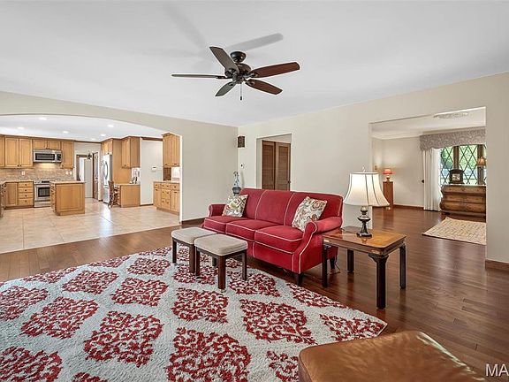 WOW! Sprawling one owner updated ranch home in Lindbergh Schools. Entry foyer, formal living and dining rooms with newer hardwood wood floors, open floor plan into the XL family room with gas fireplace, hardwood floors, breakfast room leads to the large 3 season room through sliding doors, kitchen with ceramic tile floors, center island, granite counters, updated 42" maple cabinetry with stainless appliances, pantry, planning desk and tons of storage. The main floor laundry room is gigantic with a closet and sink and has room for cubbies +more. All 4 bedrooms are on the main level. The master suite is 'sweet' and huge with a walk in closet, ensuite bath with double sinks, and a walk in shower. There are 3 additional bedrooms with carpeting. Sprinkler system, newer water heater and hvac with in home humidifier. Recessed lighting, 6 panel doors, attic fan, half bath, new front door, alarm system, crown molding, OS 2 car side entry garage. Showings begin 5/14. Additional Rooms: Sun Room