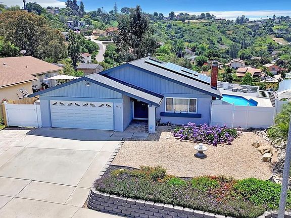 This stunning 3 bedroom, 2 bathroom home is nestled in one of the most sought-after neighborhoods in Spring Valley. The home sits in a cul-de-sac with beautiful, lush drought tolerant landscaping. The living room is accented with a cozy fireplace and large windows that makes this space so light and bright. The kitchen comes with plenty of counter space, modern stainless-steel appliances, and recessed lighting. The large dining room is perfect for dinner parties or special occasions. The spacious primary suite features a large bedroom with 2 walk-in closets. The additional two bedrooms both offer ample closet space. The outdoor backyard is an oasis with gorgeous views of the city and sunsets. A large pool/hot tub and a beautifully landscaped backyard. It is perfect for outdoor dining and entertaining. This home is situated in a prime location, close to shopping, dining, and entertainment. It is also just minutes away from top-rated schools and major highways, making it the perfect place to call home.