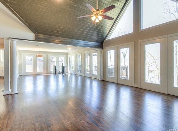 Priced to sell, Must see! Total Remodel! Modern Lake Front Living. Minutes from Airport and 485.Gorgeous New Dark Hardwoods in Vaulted Great Rm, Dining Rm and Entertaining Rm All Open to a view of Lake. Spacious Master Suite W/ 2 Closets and Totally Updated Bath. All New Kitchen features Granite,Modern Light Cabinets, Breakfast area and Dark Hardwood.Features Rec Rm & Large Storage/work room.3 Tiered Dock has 2 Lifts! Entertaining area and Sun Deck. Deep water Lot. Irrigation system