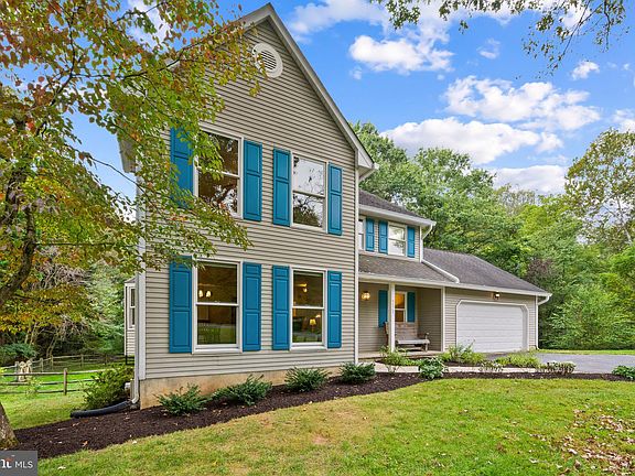 Elegant Colonial residence offering 3,666 square feet with 4 bedrooms, 3 full baths, 1 half bath, and a 2-car garage, set on more than half an acre of private land in sought-after The Willows. A welcoming front porch and lush landscaping lead into the beautifully maintained interior, where hardwood floors flow throughout the main-level foyer. The formal living room seamlessly opens into the dining room, accented by a sparkling chandelier and a large bay window. The eat-in kitchen, updated in 2021, showcases luxury vinyl plank flooring, quartz countertops that extend into the backsplash, crisp white appliances, and a spacious breakfast area. Just beyond, the spacious family room impresses with soaring vaulted ceilings, a cozy gas fireplace, and direct access to the deck. A well-appointed office (or potential guest bedroom), a laundry closet with a washer (2025) and dryer (2021), and a stylishly updated powder room (2024) add everyday convenience. Upstairs, four bedrooms and two refreshed full baths (2022) include the primary suite with hardwood floors, a private attached bath, and a separate vanity area. The three secondary bedrooms all feature durable laminate flooring. The fully finished walk-out lower level expands the living space with a large recreation room, a versatile bonus room, and a workshop area. Outdoors, enjoy the Trex® deck, a lower covered brick patio, and a fenced backyard that backs to mature trees and a peaceful creek—an ideal setting for entertaining or quiet relaxation. Notable updates include the HVAC system (2025), solar panels, and more—providing comfort, efficiency, and energy savings.