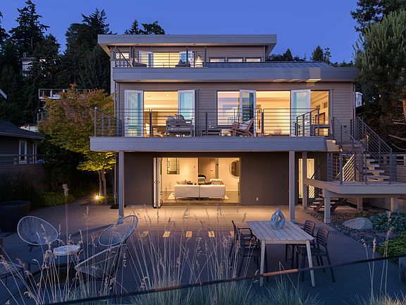 This spectacular home, designed by Tyler Engle Architects, offers 55' of waterfront & expansive Puget Sound views from every level. An exceptional site along Brace Point, just South of the Fauntleroy Ferry in West Seattle, gives this open & light-filled residence direct beach access from its 3300sf of carefully considered space with walls of glass that open to the water on every level. The primary suite encompasses the entire top floor, while a bed/bath on each level lives like 3 suites. Original design included 2 car garage, currently used as mud room & gym. Meticulous detail & a restrained palette of native materials create exquisite subtly & luxury that interacts seamlessly with its waterside surroundings. Gated. Private. Sublime.