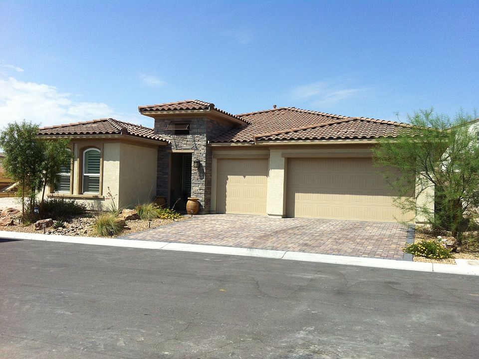 Guard gated single story home located in the master-planned community of Mountains Edge was built in fall of 2011. This is truly an exceptional single story, 3 bedroom and 1 den, 2 full bathrooms, 3 car garage with covered patio and gourmet kitchen that will impress any foodie complete with double ovens, gas cooktop, granite countertops, huge island with pull up seating, walk in pantry, recessed lighting, built-in microwave, and beautiful warm wood cabinetry. The primary bedroom is a dream, large and very spacious open to it's bathroom features two separate vanities stationed across from each other, separate shower, and separate soaking tub surrounded by granite, abundant clothing space in the larger than life walk in closet! Neighborhood Description 9829 Buttermilk Falls St is a guard gated subdivision located in the master-planned community of Mountains Edge.