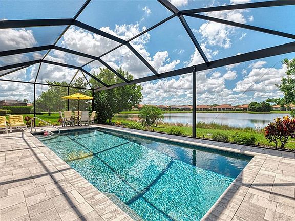 There’s a true sense of privacy and serenity here—wake up to quiet mornings by the pool with your coffee overlooking the peaceful water view, and unwind in the evening as the sunset breezes drift in. Exceptional 4-Bedroom, 3-Bath POOL home located in a vibrant, MAINTENANCE FREE community with LOW HOA Fees, NO CDD Fees and NOT in a Flood Zone. Perfectly designed for comfort, privacy, and peace of mind. As an added value, the sellers will contribute one quarter of the HOA fees with an acceptable agreement. Enjoy a Premium lot with stunning WATER view, rich in abundant wildlife through the Clear View lanai screen while relaxing in your CUSTOM SALTWATER Pool. The pool is perfect for swimming laps or unwinding in the evening with multi-hued lights that create a beautiful nighttime ambiance. For storm protection, easy close ACCORDION SHUTTERS for all windows, and Remote Controlled HURRICANE SCREENS on the Covered Lanai provide a secure space for storing pool furniture, eliminating the need to bring it inside. Plus, this home is equipped with Smart Home Technology, Whole House Water Filtration System and buried Propane Tank for your barbecue or generator. The split floor plan features two Bedrooms, on one side of the home which are currently used as offices with extra storage, offering versatile space to suit your needs and a Guest Bath. A second En suite Bedroom is located on the other side of the home. The Primary Suite is ideally situated for relaxation and tranquility, enhanced by two CUSTOM Walk-In Closets and a luxurious En suite with dual sinks, and Large Shower. The Great Room with triple sliders flows to the Dining area and gourmet Kitchen featuring granite countertops, stainless steel appliances, island, abundant cabinetry with crown, pots & pans drawer, and LARGE Pantry. Laundry is a breeze with a designated folding area which leads to the garage with epoxy flooring and hurricane rated garage door. Watercrest is a gated community where your HOA Fee includes your Lawn Care, Trimming of Landscaping, Irrigation, Zero Entry Pool, and state of the art Fitness Center. This is the kind of community where neighbors become friends — potlucks, parties, and celebrations from the Super Bowl to Cinco de Mayo, all with great food, laughter, and Florida fun! Excellent location, less than 5 miles to Downtown Venice pristine Beaches, fine Dining, Shopping, Legacy Trail and the Venice Theatre. Less than five minutes from the grocery store, this location makes daily errands effortless. You’ll also find a couple of great restaurants in the same plaza, along with nearby medical offices and Sarasota Memorial Hospital for added convenience. Schedule your Private Showing today and discover why you'll never want to leave.