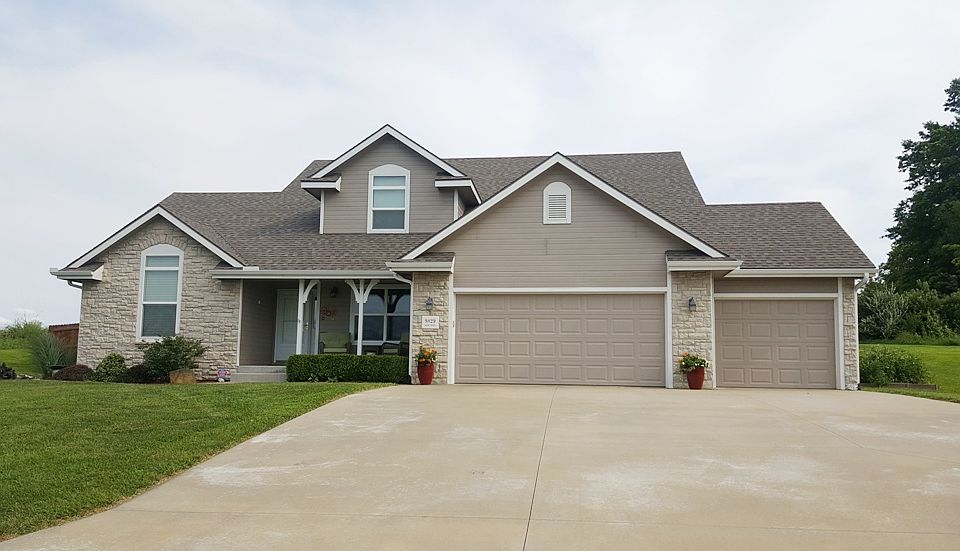 Meticulously maintained, move-in ready Washburn Rural home that backs up to Fairway #9 of the Prairie View Golf Course! You'll love the covered porch, living room w/soaring ceilings, updated wood floors & inviting fireplace. Home features main floor master suite w/Jacuzzi tub, double vanity & crown molding, eat-in kitchen w/bar, formal dining, main floor laundry, pantry & 3 bedrooms upstairs w/separate living area. Attractive landscaping, beautiful scenery & quiet neighborhood make this a hole in one!