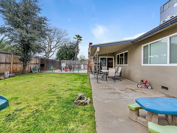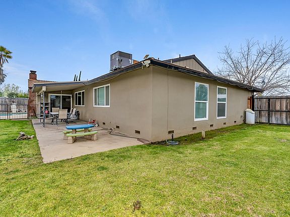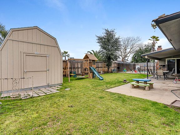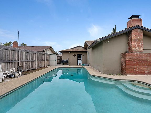 Location, location, location! You're only a short drive/walk from Old Town Clovis and all the dining and shopping options Clovis has to offer. As you come home, you'll be greeted by a large family room, which flows seamlessly into a warm and welcoming spacious living room just off the open kitchen and dining area. The kitchen has built-in double ovens/appliances (perfect for the upcoming holiday festivities). The fireplace in the living room is an EPA Phase II-certified natural gas insert. Unwind in the master bedroom complete with a private bathroom and walk-in closet. All bedrooms are spacious and equipped with ceiling fans. The backyard is a true highlight with a large gated pool, covered patio, spacious grassy area and side yard. The garage features built in cabinets for added convenience. There's a 12x10 Tuff shed that will be included in the purchase of the home as well as a play structure for the kids.