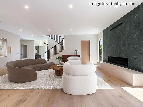 Statement fireplaceLuxurious main-level primary suiteExpansive windowsHome officePotential poolClean contemporary designHigh ceilings