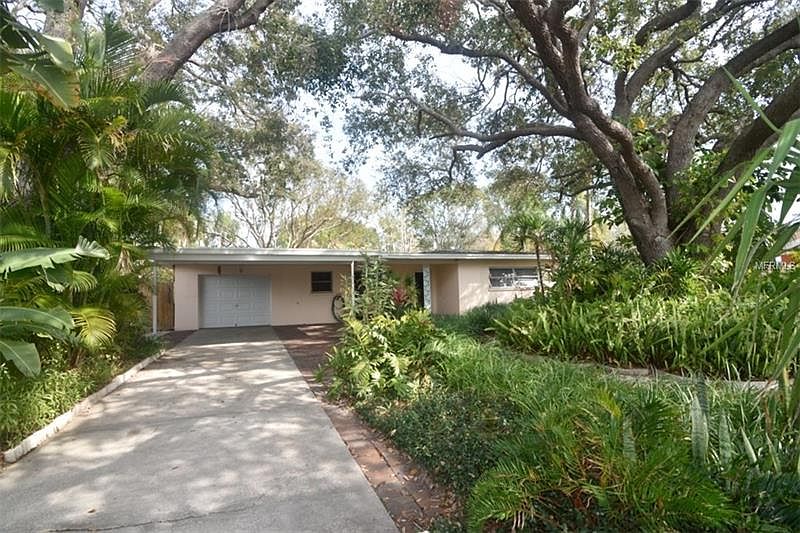 Welcome to this private oasis located in Delightful Dunedin. This wonderful two bedroom home is literally steps away from The Hammock, Highlander Park & Aquatic Complex and just a short bike ride on the Pinellas Trail to down town Dunedin and Honeymoon Island. The Dunedin Fine Arts and Community Center are just around the corner as well. This great home features terrazzo flooring throughout, massive closet space and many tasteful updates like louvered closet doors, Corian countertops and new vanity top and sink in main bath. Step out any of the french doors and you will find brick patios that lead to the lush and tropical backyard. Garage has been freshly painted. Wall a/c units are newer and roof was installed in 2011. Come see!