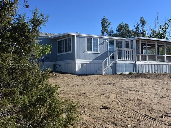 Clean and move in ready single wide mobile home on a permanent foundation. There is an enclosed add-on that could be a 3rd bedroom along with an enclosed porch (both not permitted). All situated on a 2.28 acre parcel at the end of road for privacy with outstanding views and nice shade trees. Owner may carry with at least 20% down at agreed upon terms. Zoned for horses and located in the preferred Snow Line School District. Within close proximity to Mountain Hi Ski Resort and the quaint town of Wrightwood with its shops, restaurants and its own Brewery. (Cannot be financed, unless you know a lender that will finance a single wide on a perm).