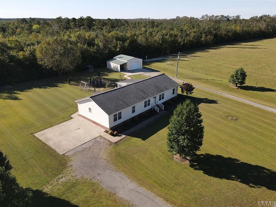 5 acres of private country living. Beautiful home that's over 2300 heated w/4 bedrooms + a bonus room, 2 full baths, living room, kitchen + family room. Outside there's a massive detached garage/workshop & carport, private stocked pond, goat pen. This land has woods on 3 of the 4 sides. New HVAC in 2019, new hot water heater in 2018. So much privacy! Pergola and dog pen do not convey.