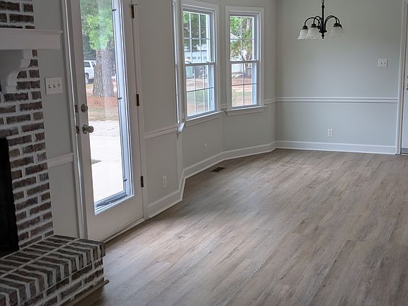 Quiet neighborhood on the outskirts of town, approximately 10 min from the base and shopping. Walmart and Food Lion less than 5 minutes away. Whole house has been remodeled. Fresh paint throughout, including garage. New wood floors throughout, quartz countertops in kitchen and baths, new appliances and tile backsplash in kitchen, new light fixtures/ceiling fans throughout. Detached garage/outbuilding insulated/upgraded also.