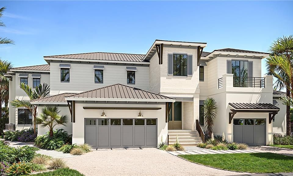 Impressive, custom-built home by The Lykos Group, Inc. situated on the very few key lots left in Marco Island with stunning views and direct access (no bridges) just minutes by boat to the Gulf of America, Isle of Capri, Marco Island Yacht Club, World Famous Snook Inn. Over 170 feet of river frontage, serene paradise with an abundance of bird watching, wildlife, dolphins, manatees and crystal clear water views An amazing 6,230-square-foot estate home featuring five bedrooms, club room, loft, home office/exercise room, three car garage with an option of adding two car lifts, private elevator, whole home generator, 500 gallon propane tank, featuring a second floor balcony rain-curtain waterfall into the resort style pool, exquisite materials and ceiling details are just some of the features to be found in this beautiful custom home. Ready for you to begin your dream of waterfront living Spring of 2026. Renderings are labeled.