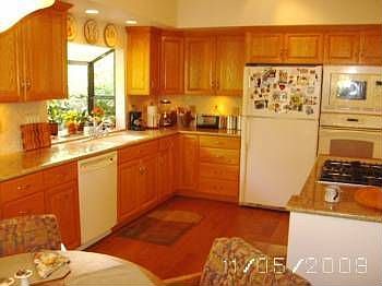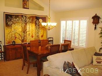 If you looking for a turnkey single story look no further. Enter this home to find gorgeous distressed wood flooring that flows throughout the home. Elegant wood shutters grace the windows of the living and dining room which adds to the elegant appeal. The kitchen boasts neutral granite counter tops, newer appliances, a breakfast bar and opens to the family room. The family room is warm and inviting with fireplace and lovely view of the backyard. Enter out to the backyard to find a large covered patio, water fountain and fruit trees. All the bedrooms are spacious and well appointed including the master suite. The master suite offers access to the backyard, master bathroom with dual sinks, separate shower and tub and walk–in closet with custom built–ins. This home sits in a great location within a gated community adding to the prestige of this wonderful home. The community offers pools, spas and tennis courts for your enjoyment.