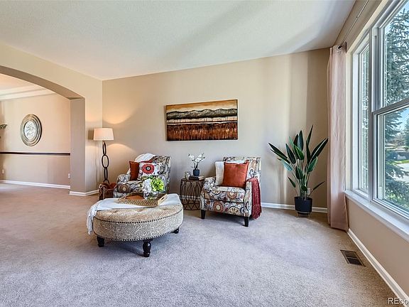 The outdoors alone could sell this home. Great neighborhood location, excellent curb appeal, large, flat backyard and golf cart convenience to Lone Tree Golf Club. This first-impression appeal, combined with a meticulously-maintained interior by the original owners, makes this 6 bed/4 bath, 2-story home a perfect place for the next family. Step inside. You are welcomed by an open, two-story entry. Main level includes formal living/dining rooms. Updated kitchen with stainless appliances, double-ovens, kitchen island, granite counters and a spacious eating area. Kitchen flows into the family room (with gas fireplace), and in addition to being the hub of the home, the kitchen is steps away from a large stamped concrete patio, making indoor and outdoor living/entertaining a breeze. But wait - there's more. Four-bedrooms up, including a primary suite with vaulted ceiling, 5-piece bath with his/her sinks, 6-foot soaking tub, separate shower, and walk-in closet. Three secondary bedrooms - all sizeable, plus full bath with double-sinks and convenient second floor laundry. Washer/dryer included. Professionally finished basement with two conforming bedrooms, 3/4 bath, storage and media/exercise/game room. Newly refinished hardwoods (2025). New baseboards (2022). Updated banisters/balusters (2022). New water heater (2024). New stamped concrete patio (2021). New concrete driveway, high-impact resistant roof, exterior paint and 25 new windows (2019). Three-car garage (new doors in 2019). Garage refrigerator included. High efficiency furnace and central air. Reasonable HOA. Trash and recycling paid by City of Lone Tree. Located in the South Suburban District which offers discounted membership at Lone Tree Golf Course as well as district functions and facilities. https://www.ssprd.org/. If you're looking for a move-in ready home in a tucked-away neighborhood with great access to shopping, services, highways, light rail, library, Lone Tree Arts, etc., don't miss this opportunity!