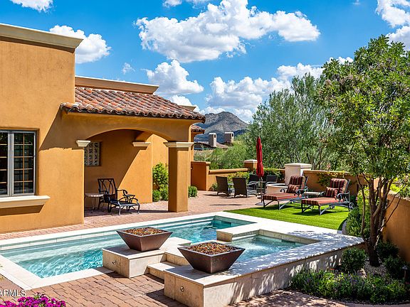 Single level custom home inside the guard gates of DC Ranch! Constructed by renowned builder Salcito Custom Homes, this 3749 sf property exudes quality and craftsmanship. Wood beamed ceilings, travertine floors, Viking and Subzero appliances, Craftsman In Wood custom doors, and California Closets in Owner's Suite are examples of some of the fine upgrades in this residence. Situated on approximately .7 acres, this property enjoys mature landscaping, mountain views and easy access to nearby path system, parks, golf club and gate. Split floorplan features Owners Suite and office on one side of the home with 2 guest bedrooms and Bonus room in the opposite wing. Spacious 3 car garage has storage rooms, built in cabinets, and adjacent overflow parking spots. Courtyard-style outdoor living space features an updated pool/spa (with new heaters); south-orientation captures plenty of Arizona sun! Outdoor areas also include multiple fire features, turf area, covered BBQ center with large island and TV, and multiple seating areas on adjacent patios. DC Ranch is known for stunning architecture, miles of bike and walking trails, access to nearby mountains, golf, tennis, schools, health clubs, restaurants and the Loop 101 freeway.