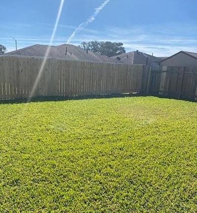 This lovely brick 3/2 bath home features custom kitchen cabinets with stainless steel appliances. A breakfast area and ceramic tile throughout. Marble tile in the foyer. Theres a spacious den & living/dining room. Detached double car garage, wrought iron gate, new roof and rear fence. A large backyard for outdoor entertaining. x flood.