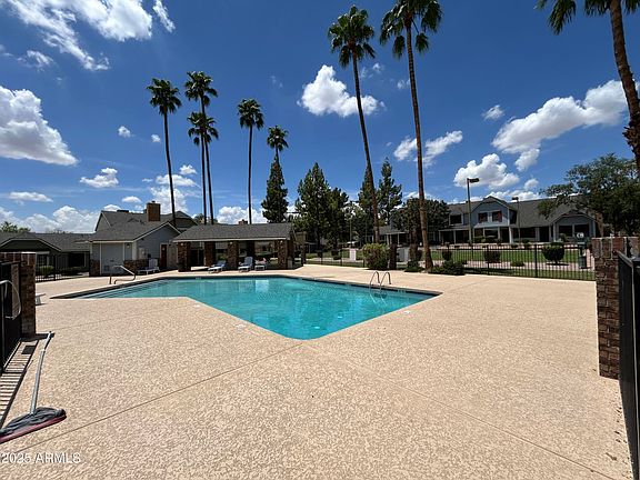 Welcome Home. This townhome is located in Phoenix by the South Mountain Park and Preserve. This home has two stories, living area, kitchen all on ground floor and the bedrooms and bath are upstairs. The kitchen has upgraded appliances and a door to the back patio area that is gated with a fence. The upstairs has the master bedroom with plenty of space and an on-suite bathroom. The second bedroom is also located upstairs, along with another bath.