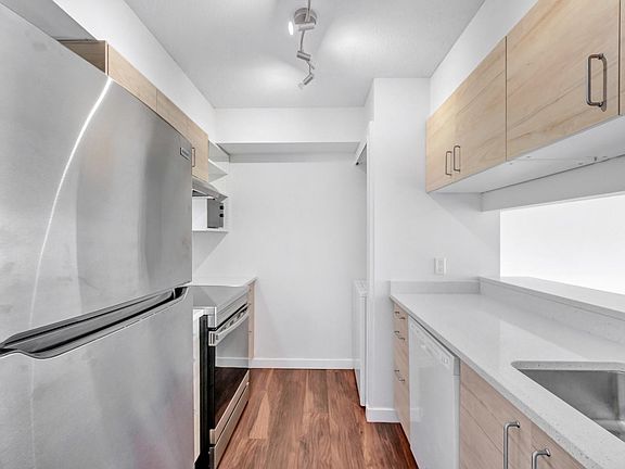 King George Park Tower - Large 675 sq ft 1 Bed/Bath that has been COMPLETELY updated that will impress the most discerning of buyers! Featuring all New Finishes and Fixtures, Kitchen cabinets, Quartz counter tops, Appliances, Remodeled bath with a new Tub/Tiles and Vanity, New flooring and fresh paint, Gas fireplace too much to list! The unit is Bright and airy with tons of natural light and generous balcony on the quiet side of the building, with a private feel and views of the lush courtyard. The building has an Exercise Center and Amenity Room. Comes with 1 secure parking and 1 storage locker. Centrally located in the prime area of Surrey, steps to King George Sky Train, Parks, Schools, SFU Campus, Library, Surrey Memorial Hospital Shopping and Restaurants.