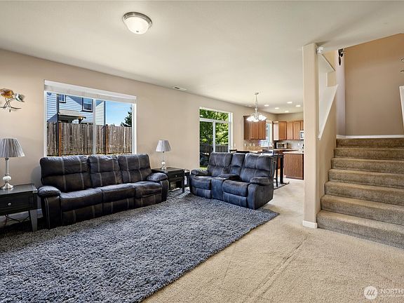 Nestled in the Rosewood Heights Neighborhood on a desirable corner lot with a spacious 4 bed, 2.5 bathroom layout in a convenient location, this home boasts just over 2,100 sqft on 2-stories with open concept living. On the main floor entrance, you'll have an office space, kitchen w/ ample storage, Handcrafted cabinetry, and Prep Island, Office, Living Room, and Dining Room. Upstairs, you'll enjoy the Large Primary and attached 5-piece bath, huge loft area that can be used as a 2nd living room, 3 additional bedrooms and hall bath. Close in proximity to local shopping and everyday amenities without the constant hustle and bustle of nearby Puyallup. All appliances stay!