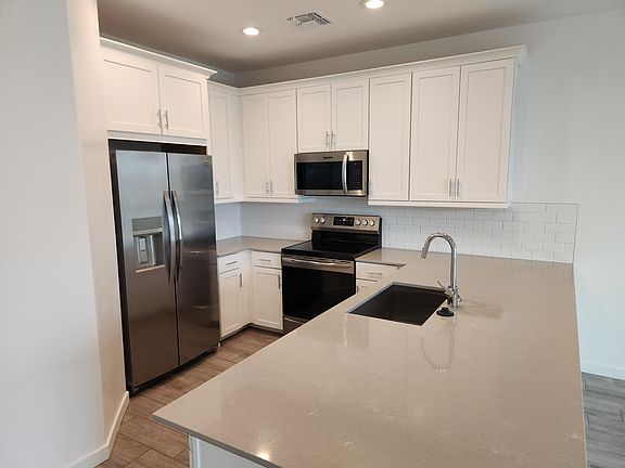 This beautiful townhouse (built in early 2023) is located in the highly sought after Eastmark community in East Mesa. The home includes stainless steel appliances, a full size stackable washer/dryer (in unit), and an attached two car garage. This unit has a beautiful view of the community from the balcony. It comes fully upgraded with white shaker cabinets, quartz countertops, subway tile backsplash, beautiful faux wood tile flooring, upgraded carpeting in the bedrooms, faux wood cordless blinds, walk in shower (master bedroom), and much more. This townhouse is conveniently located near the Eastmark great park and comes with resident amenities such as access to "The Mark" (The Eastmark community center), the splash pad, the community pool, exclusive resident events, the dozens of parks throughout the neighborhood, and more. You will have easy access to shopping, restaurants, and freeway access (minutes from the 202 and 24). Landscaping and outside maintenance is provided through the HOA.