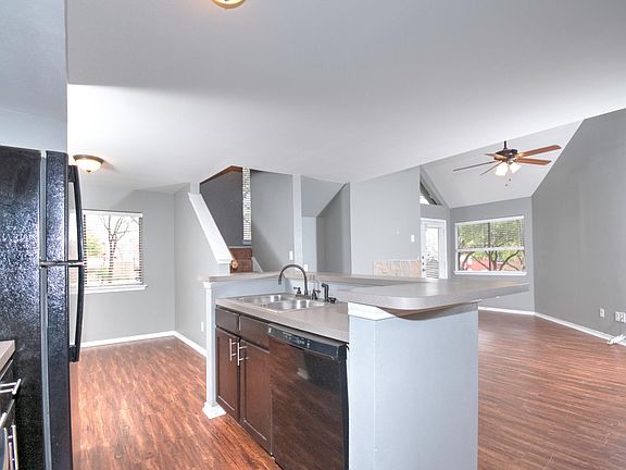 This lovely 2 bedroom 2 bath two story condo welcomes you home with laminate wood flooring throughout. Open kitchen with new range and plenty of counter space, breakfast bar island and ample cabinet space. Your cozy romantic living area complete with ceramic tiled fireplace during those cold winters. Stackable washer and dryer are conveniently located near the master bedroom and bath. Fall in love with these beautifully renovated bathrooms! Large walk-in closets for both bedrooms. Ceiling fans are in each bedroom and living room. Large outdoor patio overlooks the relaxing courtyard with mature trees. Separate loft bedroom upstairs with private door, perfect for roommate entrance. Enjoy the common area and community pool. Centrally located near Richland College, easy access to major transportation veins, Hwy 75 & Hwy 635, convenient to shopping and restaurants! Owner pays $323 Monthly HOA to cover water and sewer. You just need to connect electricity and make this your sweet home!