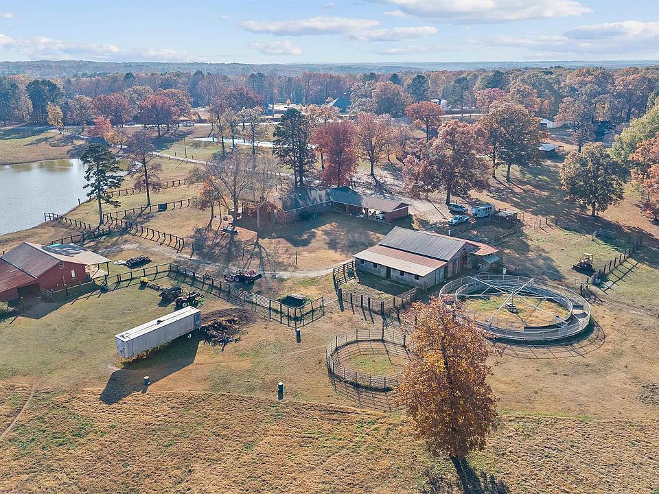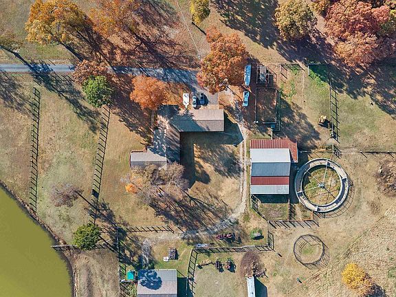 Absolutely stunning 23.4-acre property just minutes from town! This private estate features a spacious 4-bedroom, 4-bath home with incredible views throughout. The main home offers 8' ceilings in most areas, with a gorgeous den boasting 12' tongue-and-groove ceilings. A large, scenic stocked pond adds to the property’s beauty! Equestrian enthusiasts will appreciate the impressive barn with 13 stalls, a wash rack, and a turnout pen. In addition, the property includes an approximately 1,100 sq ft studio home complete with a full kitchen, bedroom, and bath, plus an attached foaling barn—ideal for caring for and monitoring new foals. Roofs on all three buildings are approximately 3 years old! This rare find combines convenience, privacy, and outstanding equestrian facilities in one exceptional property. Agents see remarks.