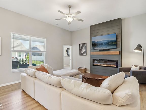 This modern 3 bedroom 2 bath 1,768 square-foot ranch home is nestled in the coveted low-maintenance Estes Park neighborhood. As you enter, you'll be captivated by the open-concept design and soaring 12-foot ceilings, creating a seamless flow throughout the living areas. The great room, highlighted by a sleek electric fireplace, offers an ideal space for both relaxation and entertaining. The kitchen, a culinary enthusiast's dream, features a spacious island and contemporary appliances, including a dishwasher, gas range, and microwave, making meal preparation a breeze. Adjacent to the kitchen, the dining area provides a wonderful space for family meals and gatherings. The primary bedroom is a serene retreat, complete with a walk-in closet and an ensuite bath featuring double sinks and a walk-in shower enclosure. Two additional bedrooms offer versatility, ideal for accommodating guests or setting up a home office. Stepping outside, you'll find several options for outdoor recreation and entertainment. Start your day with a morning coffee on the covered front porch, or enjoy dining with friends on the covered rear patio while watching children and pets play in the fenced yard. The irrigation system ensures your landscape remains lush and green, while the attached garage provides convenience for parking and storage. Schedule a private showing today and envision your future in this remarkable space.