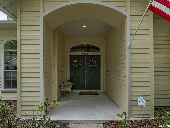 This beautifully updated 4BD, 2BA home in Katelyn Lane has been immaculately cared for, is located on a corner lot and is loaded with upgrades to include the 272 sq ft screened porch that was enclosed in '15 & a sewing room/closet (8x6.5) was added; '12 new roof; '14 added flooring over the garage attic space; '15 gutters/gutter guards added, kitchen was renovated w/new cabinets & Travertine tile floors in kitchen and breakfast room (kitchen has granite countertops); '16 Fencing was added to the north side w/storage cover for garden tools & deck added in backyard; '19 new 14 Seer HVAC, remodeled guest and master bath w/Calcutta porcelain tile flrs (guest) & travertine tile in MBA, new cabinets, fixtures, faucets, commodes; '20 new GE kitchen stove/oven; Crown moulding in living room, kitchen, dining area; Upper cabinets, shelving, and a sink with cabinet were added in the laundry room; Hand scraped engineered wood floors in great room, DR, LR; Gas fireplace in great room; 2 car garage. HOA takes care of the front yard. Back yard perimeter is fenced; fruit trees on south side of the house. Irrigation & Alarm system. Sold As Is. Front yard maintained by the HOA. Minutes to UF, SFCC, VA.
