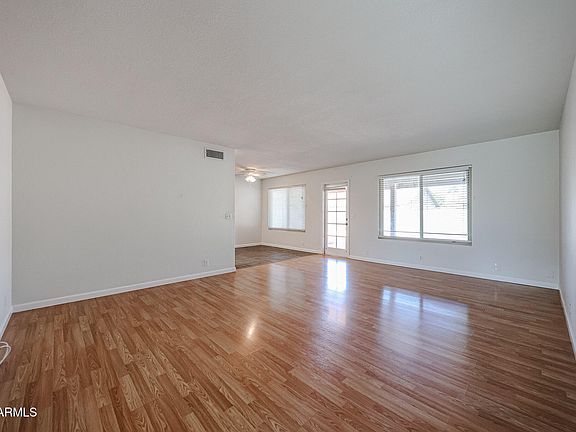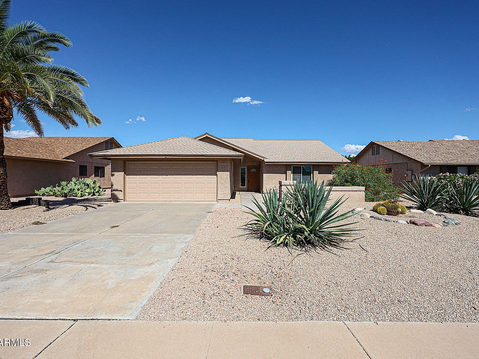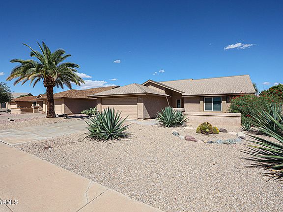 The primary suite includes a private bath and walk-in closet, while the guest bedroom provides comfort and flexibility for visitors or a home office. Step outside to enjoy a covered patio and low-maintenance yard—ideal for relaxing Arizona evenings.