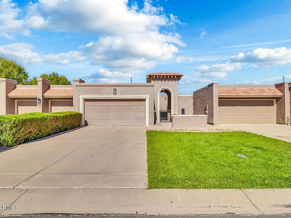 Welcome to your spacious 2bed/2bath townhome in highly sought-after Sun Lakes! Enjoy nearly 1400 sqft of bright, open living space enhanced by vaulted ceilings. This move-in ready home features brand new paint and carpet. The space is light and bright with skylights overhead. Fantastic curb appeal starts with a charming courtyard entry with a backyard that is just as beautiful for relaxation under the large covered patio. Sun Lakes offers the ultimate active 55+ lifestyle: championship golf, multiple swimming pools, clubhouses, and a vibrant social calendar. Don't miss this opportunity for maintenance-free, resort-style living!