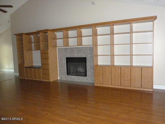 Upgraded home with no HOA. Pride of ownership is evident when you pull up and notice the well manicured, easy care desert landscaping, upgraded vinyl siding, security screen door, sunscreens plus you have an RV gate and a pad to the side of the house. You will be impressed when you open the door to the living room with the laminate wood floors, built-in entertainment center and wood burning fireplace, all open to the dining area and kitchen. The split floor plan has an extra large master suite with sitting area on one side has been upgraded along with the mater bath and master closet to maximize your storage options. Two bedrooms, hall bath and laundry complete the house. Sliding doors to the covered patio and an uncovered patio.