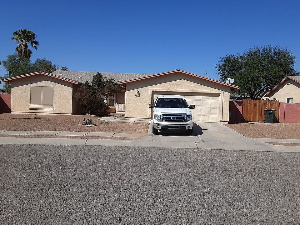 This warm and welcoming single story 4 bedroom, 2 bathroom home has vaulted ceilings and an open floor plan! The kitchen boasts modern lighting, tons of storage, and plenty of counterspace. After a long day, retire to the primary bedroom suite which includes a walk-in closet and a private bathroom with double vanity sinks and a separate soaking tub. Head back through the kitchen and out to the backyard; an extraordinary private space with a shimmering pool and covered patio. Fantastic location close to highway 10 and Saguaro National Park East.