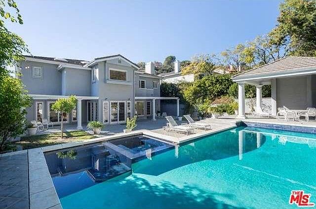 Elegant Traditional home in Beverly Hills off Deep Canyon drive on a quiet cul-de-sac. Situated on 15,094 sqft lot; this beautiful 6,263 sqft home with 5 bedrooms and 6.5 baths features spacious rooms throughout. The grand entrance with high ceiling and a beautiful circular staircase set the stately tone immediately upon entry to this wonderful home. The first level features a luxurious formal living and dining room, ideal for entertaining. The Kitchen and breakfast area opens up to a great oversized family room with a full bar and surround sound entertainment system. Upstairs are four generous en-suites and a library with a study area. The expansive master suite has high ceilings, his and hers closet and his and hers spa like bathrooms featuring an extravagant steam shower. Large rear yard has a large pool/spa with water features and a corner structure (pool cabana which needs TLC) complete with full bath and changing area.